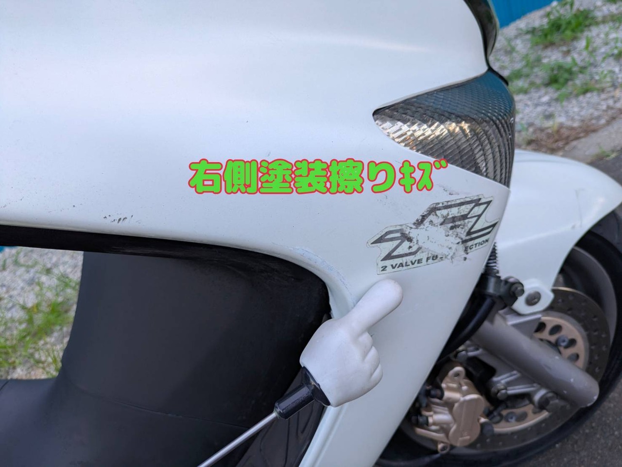 外装傷、塗装ムラ、バッテリー弱 フォーク滲み