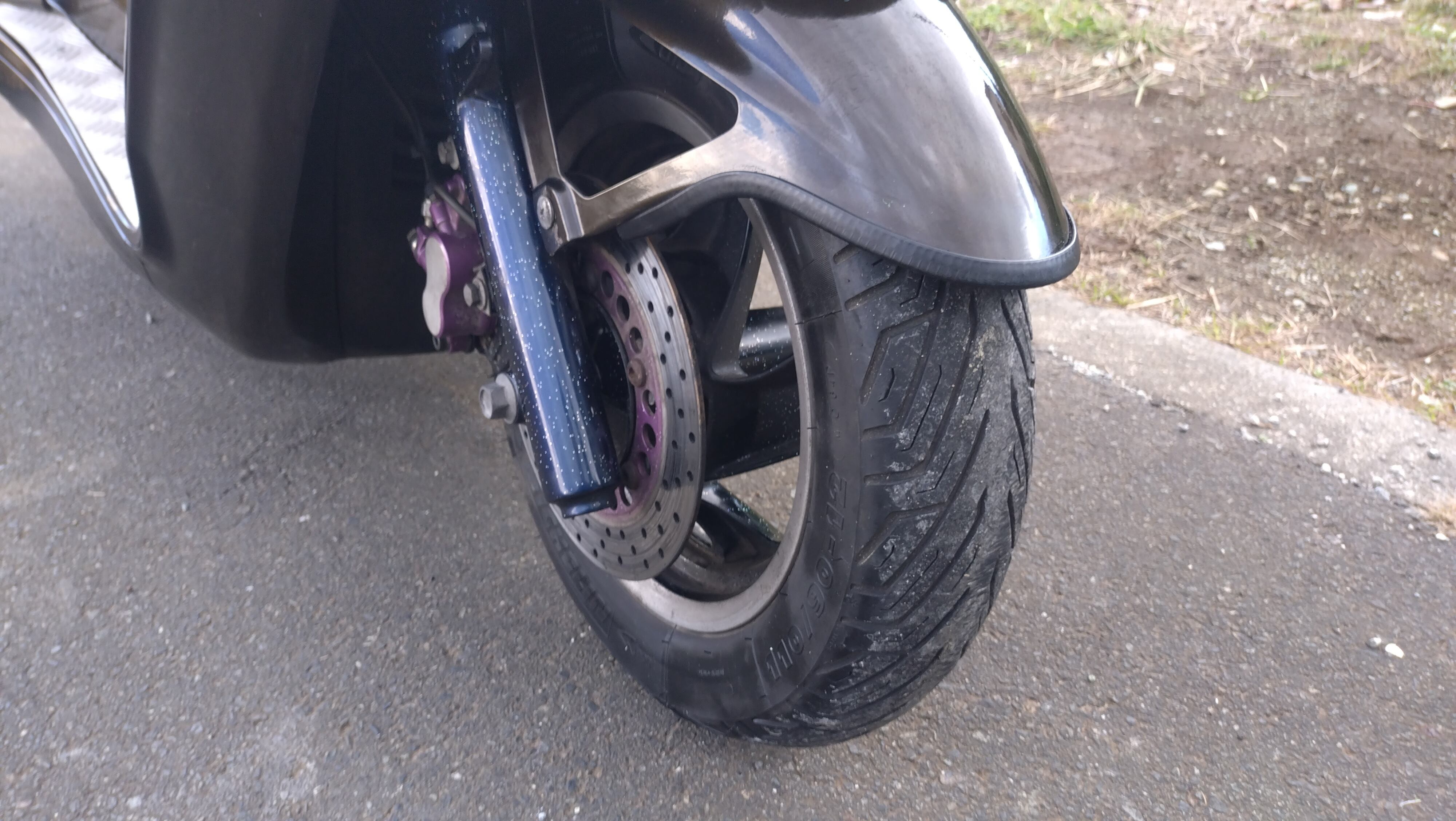 タイヤ溝 F7、R0、フロントフォークダストシールひび有り、オイル滲みあり
