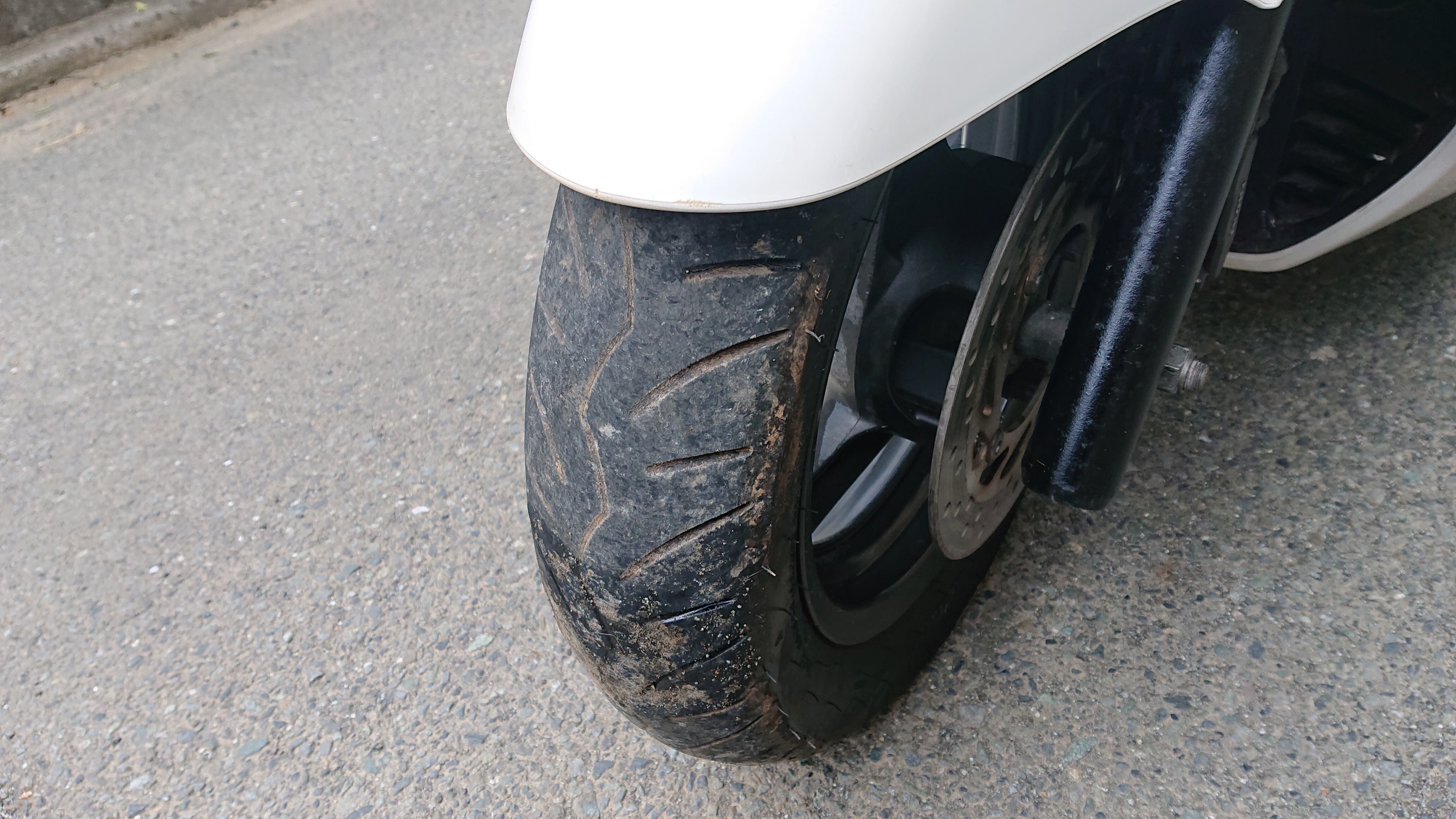 Fフォークダストシールひび、前後タイヤエアー抜けのためハンドル重たいです。★バルブ不良エアー入らず
