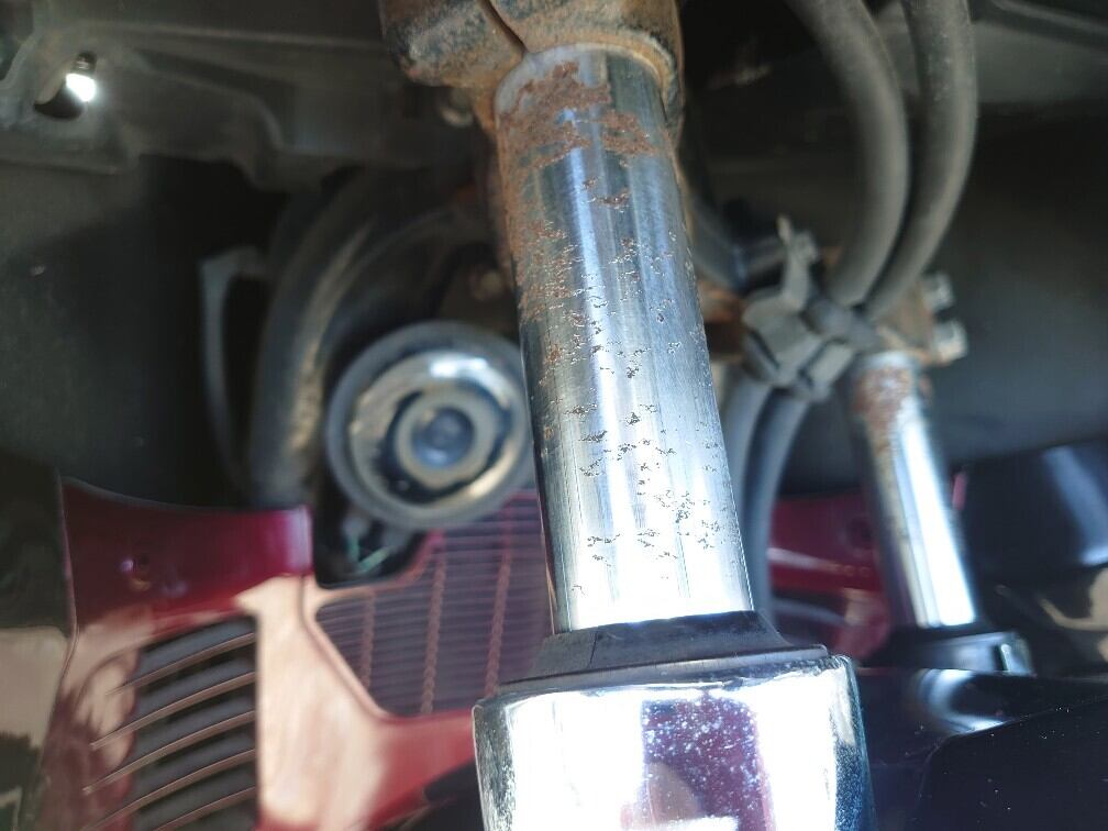 タイヤ溝 F1 R5(Rひび有)、フォーク錆(中)ダストシールひび、ステムベアリング〇、リアサス錆び(中)