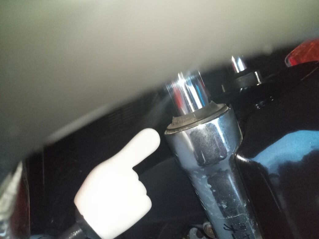 タイヤ溝 F4、R0、フロントフォークダストシールひび有り滲み有り、ステムベアリング異常無し