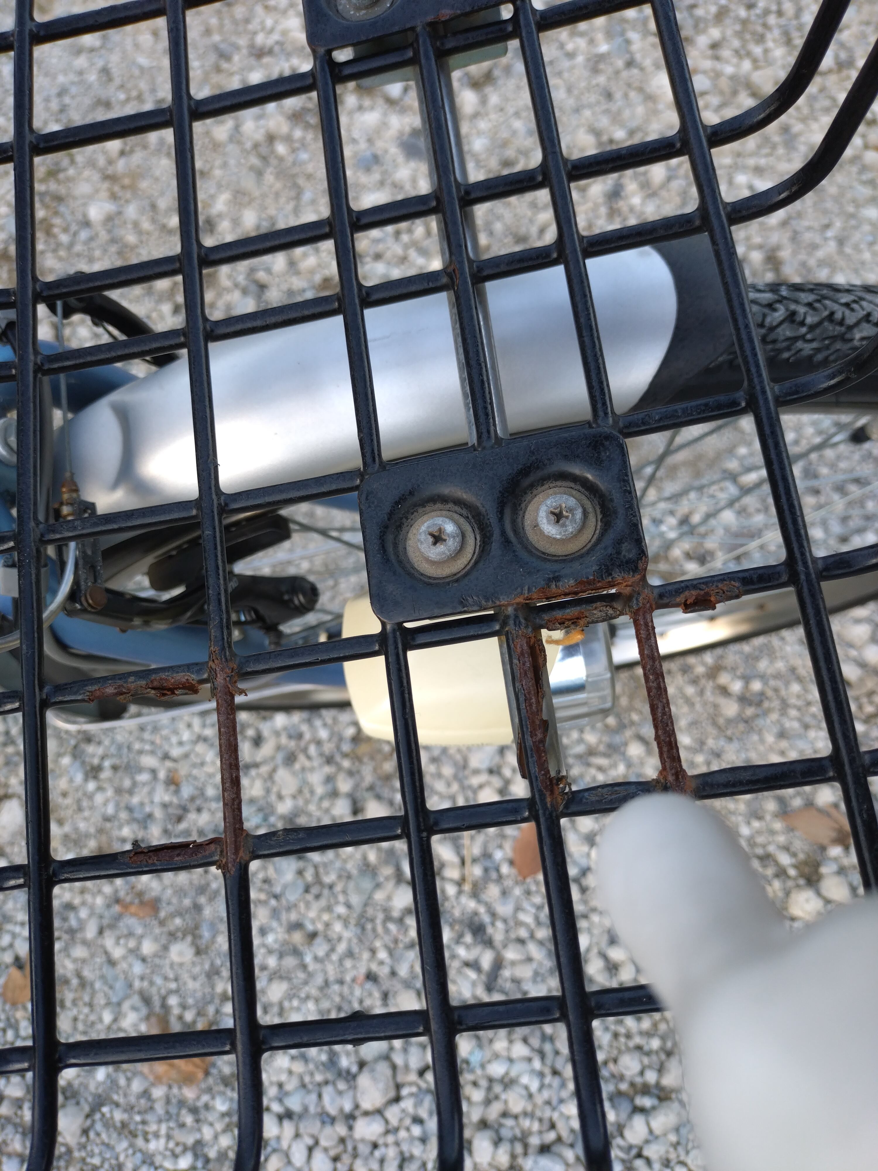 前輪泥除け凹み、カゴ削れ、画像で分かりにくい傷有り(動画や現車確認にて)